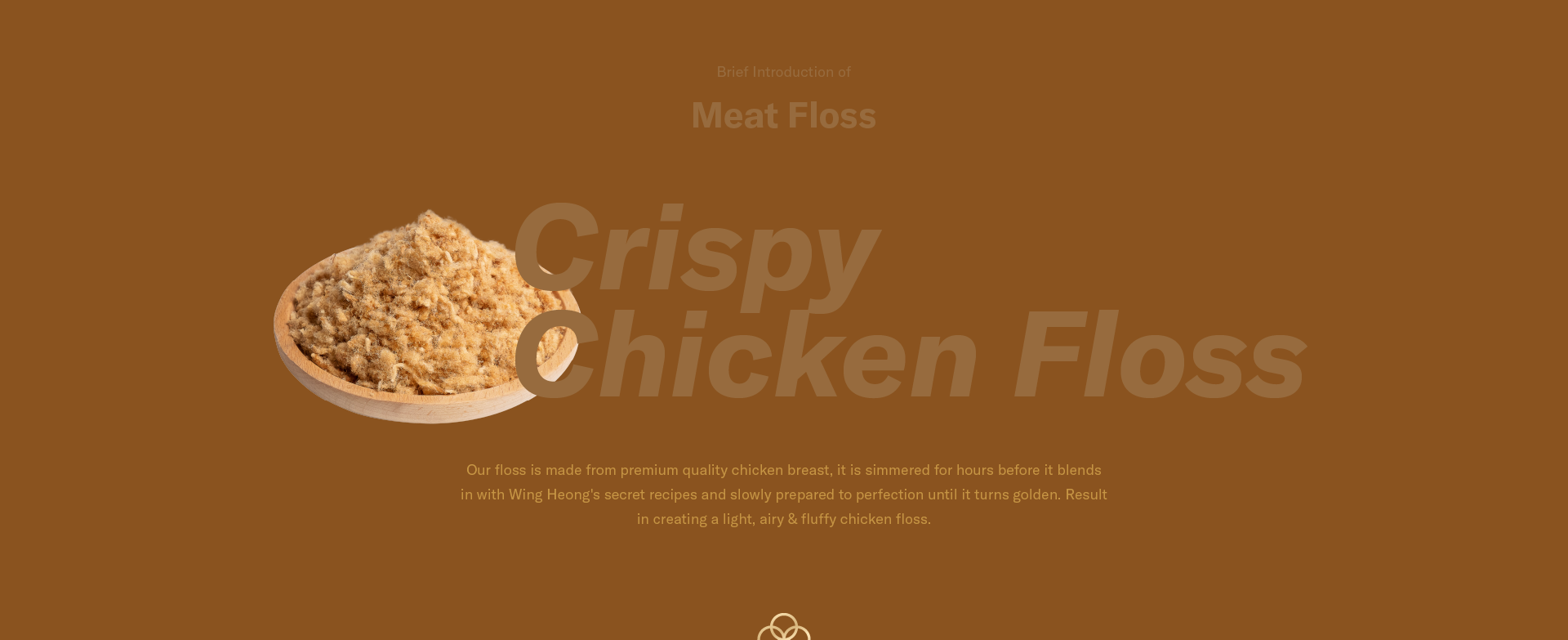 Chicken (167 g per 100g Crispy Chicken Floss), Sugar, Pepper, Flavour Enhancer (INS 621), Cooking Oil (Palm) and salt. May contain Soy, Sesame and Peanut.