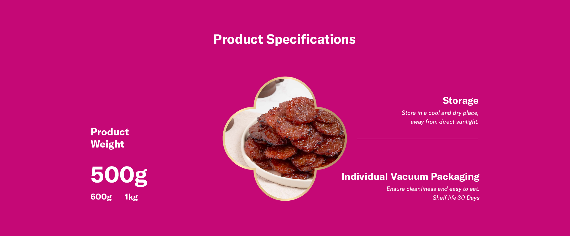 Pork Meat (85%), Sugar, Lard, Fish Sauce, Cooking Oil (Palm, Peanut and Sesame), Smoke Flavouring, Garlic Powder, White Onion Powder, White Pepper Powder, Flavouring Subtance, Flavour Enhancer (INS 621, INS 635, Salt, Lactose, Dextrose (Maize), Sucrose, Vegetable Powder, Flavouring, Whey Protein, Spice Extracts and Hydrolysed Vegetable Protein) (Milk), Stabilizer (INS 451, INS 452, INS 450, Dextrose, Salt, Antioxidant (INS 316) and Preservatives (INS 250)), Flavour Enhancer (INS 621), Antioxidant (INS 316), and Polydextrose (INS 1200). May Contain Wheat and Soy.